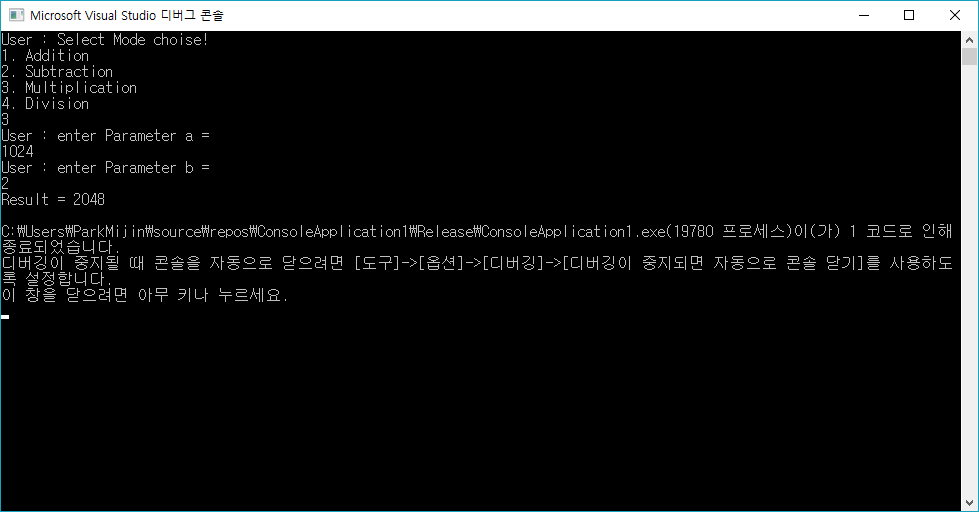 cout << "User : Select Mode choise!" << endl;