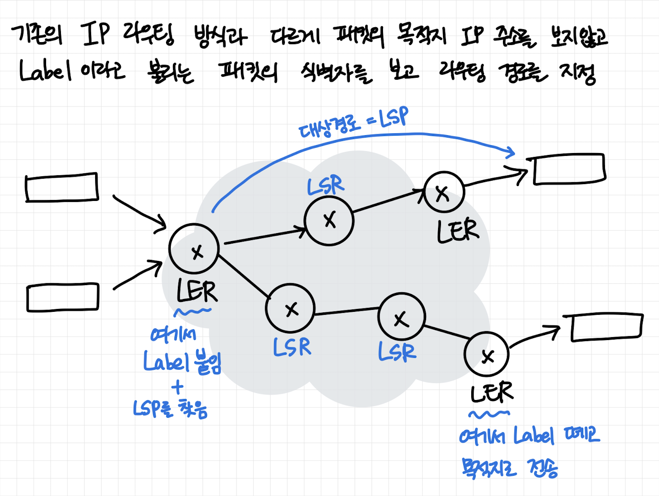 - LSR : Label Switch Router- Label을 붙인 패킷이 들어오면 Label스위칭을 통해 패킷 전달